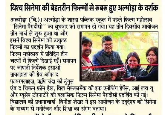 अल्मोड़ा: शारदा पब्लिक स्कूल में तीन दिवसीय पहले फिल्म महोत्सव ‘सिनेमा पैरादीसो’ का समापन, इस खास संदेश के साथ सभी का जताया आभार